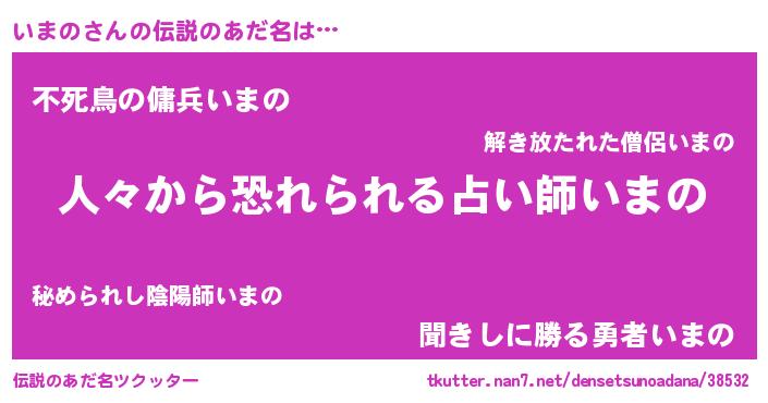 | ヘコむあだ名 | 『いまもー』『いまの(笑)』『いまを』 |