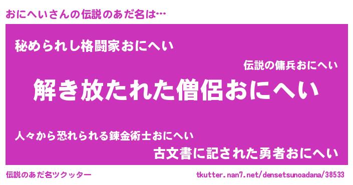 | 意味不明あだ名 | 『自称おにへい』『おにへいフォーエバー』 |