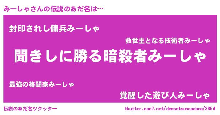| ヒーロー風カッコイイあだ名 | 『仮面ミーダー』『サイバー戦士ミーシャ』 |