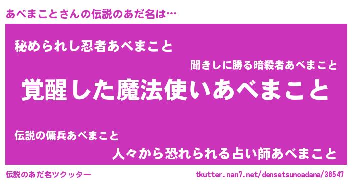 | 意味不明あだ名 | 『住所不定無職あべまこと(13歳)』 |
