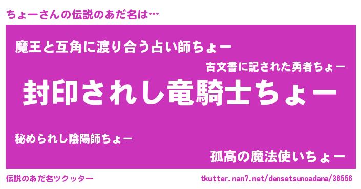 | 胡散臭い通販商品みたいなあだ名 | 『億万長者になれるブレスレット…その名も「ちょー」』 |