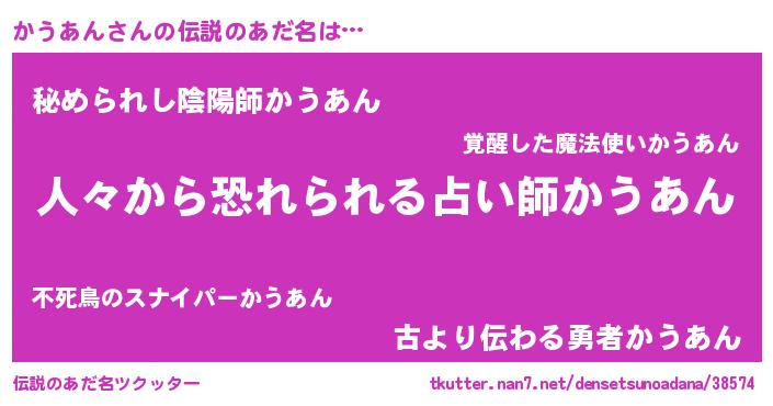 | ヒーロー風カッコイイあだ名 | 『正義の使者かうあん』『ネオカウアン』 |
