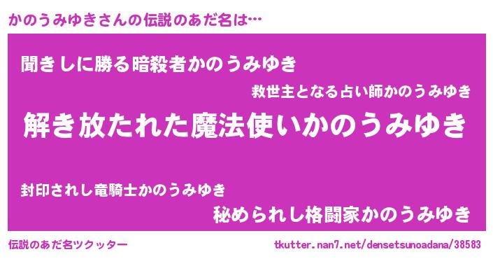 | ポケモン風あだ名 | 『カノゴンZ』『ヒカノウミユキ』 |