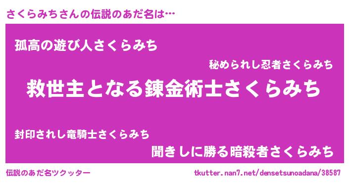 | ヒーロー風カッコイイあだ名 | 『慈愛の使者さくらみち』『暗黒騎士サク』 |