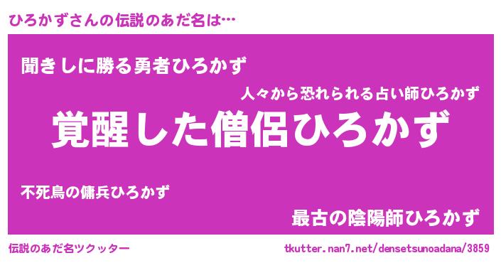 | 意味不明あだ名 | 『ヨモギ科ひろかず属』『自称ひろかず』 |
