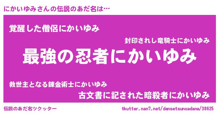 | 意味不明あだ名 | 『にかいゆみフォーエバー』 |