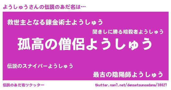 | ヒーロー風カッコイイあだ名 | 『仮面ヨウダー』『究極戦士ヨウシュウ』 |
