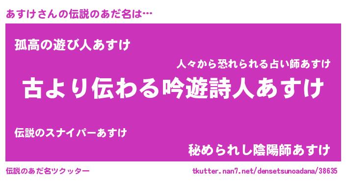 | 意味不明あだ名 | 『永久保存あすけ』『自称あすけ』 |