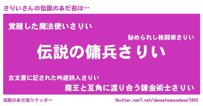 | 男性向けラノベタイトル風あだ名 | 『サリイスレイヤー』『さりいの憂鬱』 |
