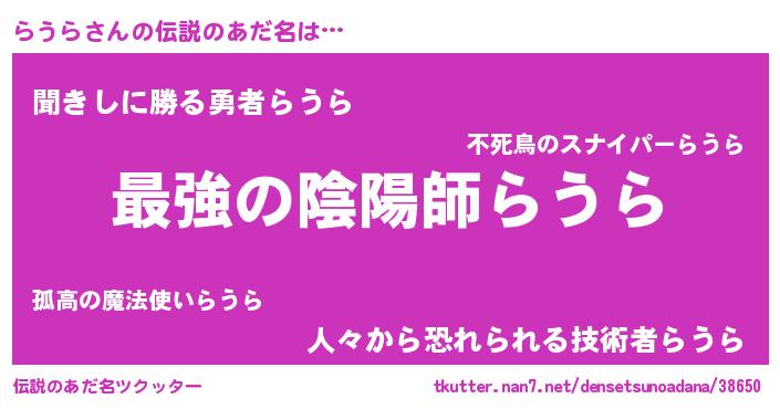 男性向けラノベタイトル風あだ名 | 『うちのらうらが世界を掌握している!』 |