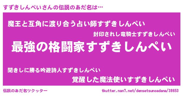 | 男性向けラノベタイトル風あだ名 | 『すずきしんぺいに滅ぼされるだけの簡単なお仕事です』 |