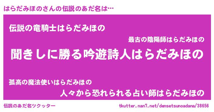 | 男性向けラノベタイトル風あだ名 | 『はらだみほのという概念が存在しない退屈な世界 』 |