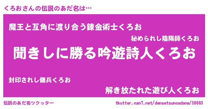 | ヘコむあだ名 | 『くろお(笑)』『くろを』『豆乳』 |