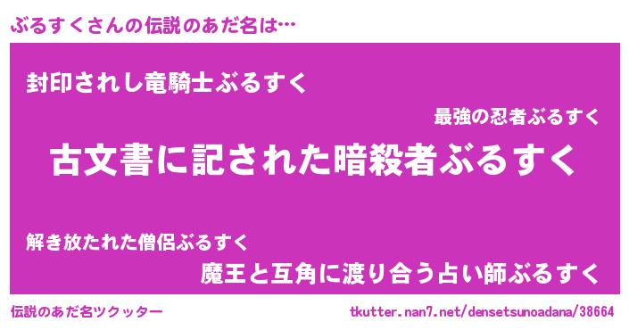 | ヘコむあだ名 | 『ぶるすく(苦笑)』『ぶるにー』 |