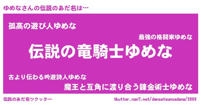 | ファンタジー風あだ名 | 『ユメフェル』『ファントムユメス』 |