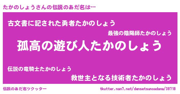 | 意味不明あだ名 | 『とにかく怪しいたかのしょう』 |