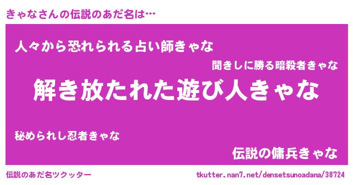 | 意味不明あだ名 | 『とにかく怪しいきゃな』『自称きゃな』 |
