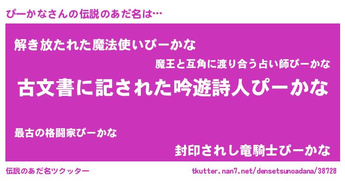 | ヒーロー風カッコイイあだ名 | 『ネオピーカナ』『魔戒騎士ピー』 |