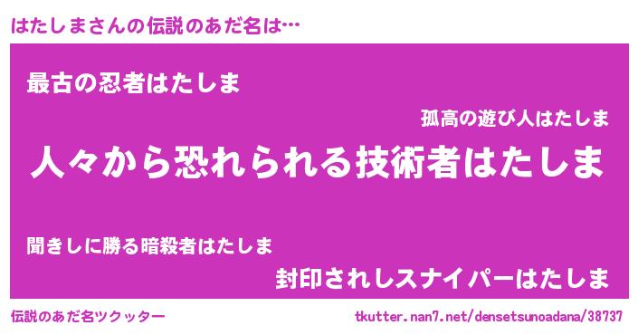 | ポケモン風あだ名 | 『ハックウザ』『ハタシダネ』 |