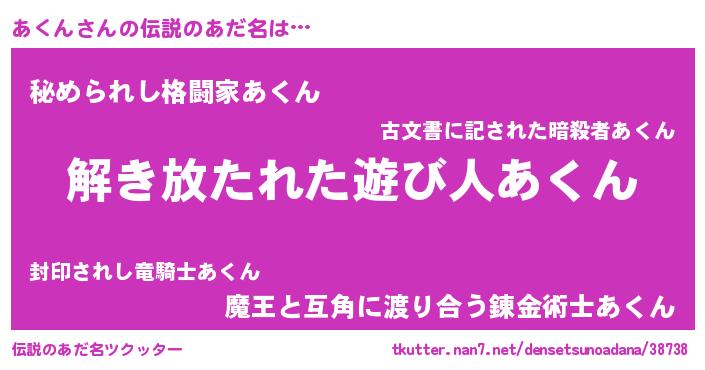 | 意味不明あだ名 | 『住所不定無職あくん(74歳)』 |