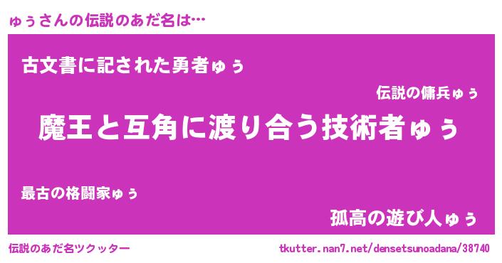 | ヒーロー風カッコイイあだ名 | 『慈愛の使者ゅぅ』『ネオュゥ』 |