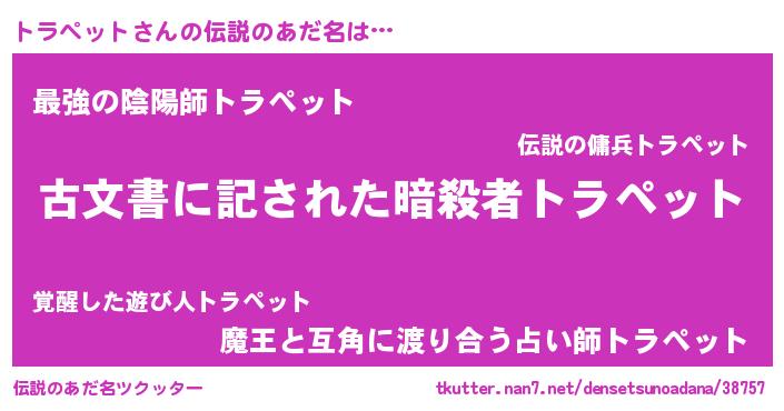 | ヒーロー風カッコイイあだ名 | 『仮面トラダー』『ネオトラペット』 |