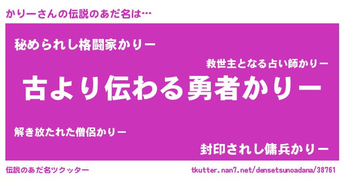 | 胡散臭い通販商品みたいなあだ名 | 『来世でも幸せになれる水素水…その名も「かりー」』 |