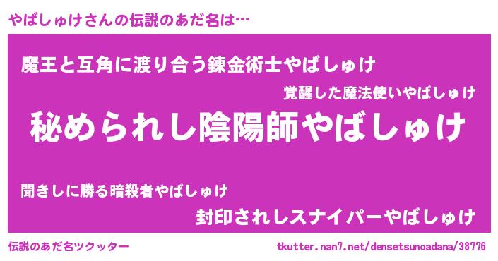 | ファンタジー風あだ名 | 『エターナルヤバシュケー』『ゼヤバトゥ』 |
