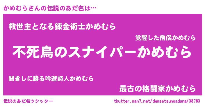 | 女子向けラノベタイトル風あだ名 | 『かめむら姫と円卓の騎士』 |