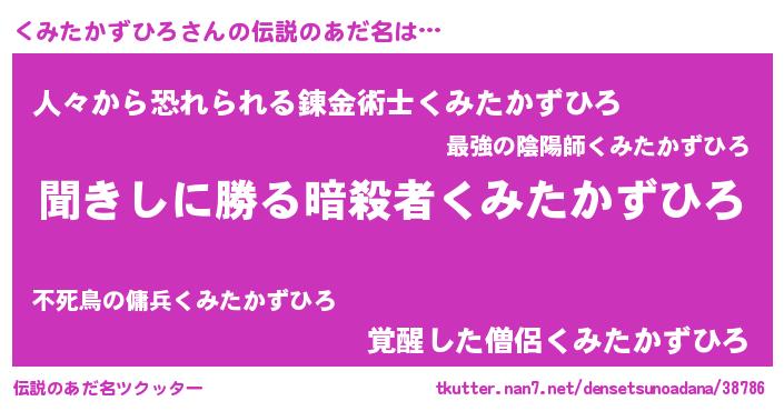 | 男性向けラノベタイトル風あだ名 | 『クミタカズヒロスレイヤー』 |