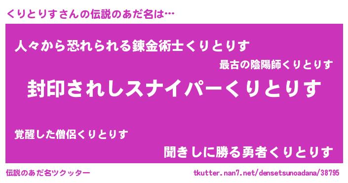 | 胡散臭い通販商品みたいなあだ名 | 『億万長者になれる霊験あらたかなお札…その名も「くりとりす」』 |