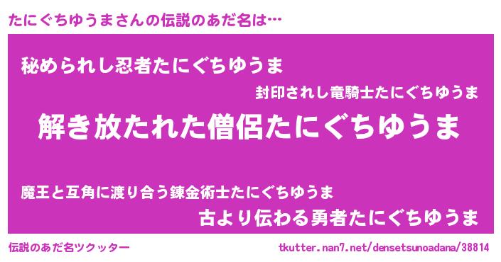 | 男性向けラノベタイトル風あだ名 | 『この素晴らしい世界にたにぐちゆうまを!』 |