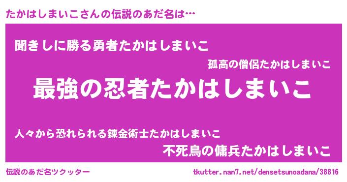 | 意味不明あだ名 | 『自称たかはしまいこ』 |