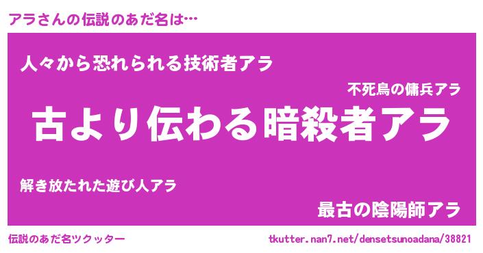 | 胡散臭い通販商品みたいなあだ名 | 『来世でも幸せになれる健康食品…その名も「アラ」』 |