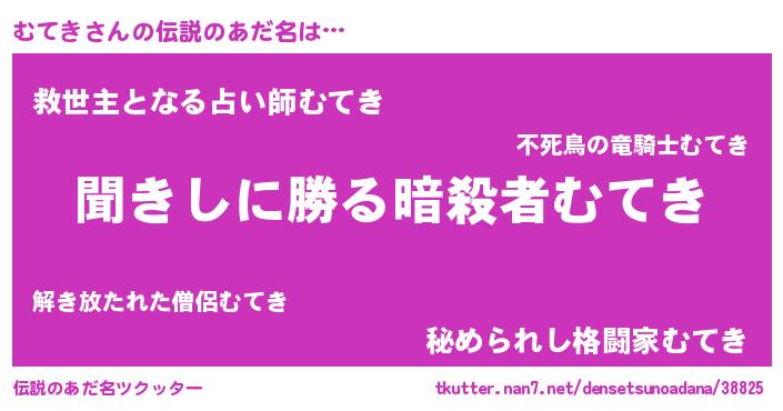 | 胡散臭い通販商品みたいなあだ名 | 『絶対に幸福をもたらす健康食品…その名も「むてき」』 |