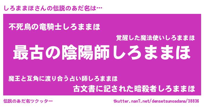| ファンタジー風あだ名 | 『エターナルシロママホー』『シロフェル』 |
