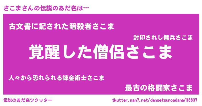 | 意味不明あだ名 | 『とにかく怪しいさこま』『自称さこま』 |
