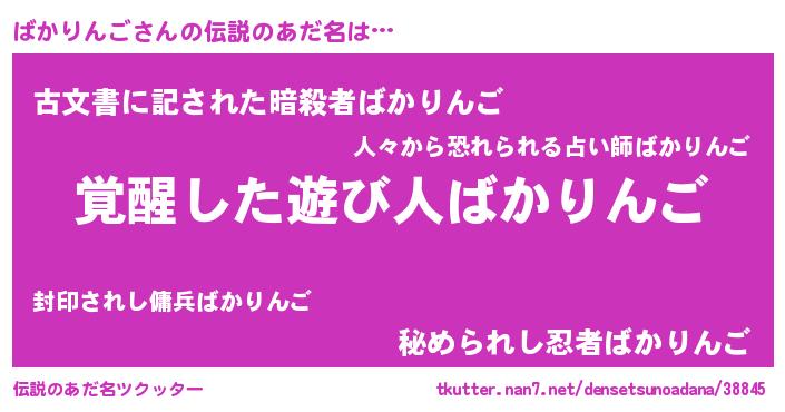| 意味不明あだ名 | 『とにかく怪しいばかりんご』 |