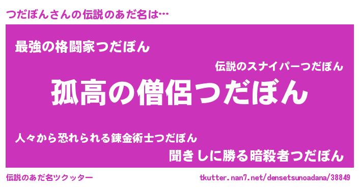 | 男性向けラノベタイトル風あだ名 | 『魔弾の王とつだぼん』 |