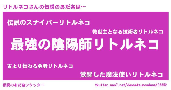| 男性向けラノベタイトル風あだ名 | 『うちのリトルネコが世界を掌握している!』 |