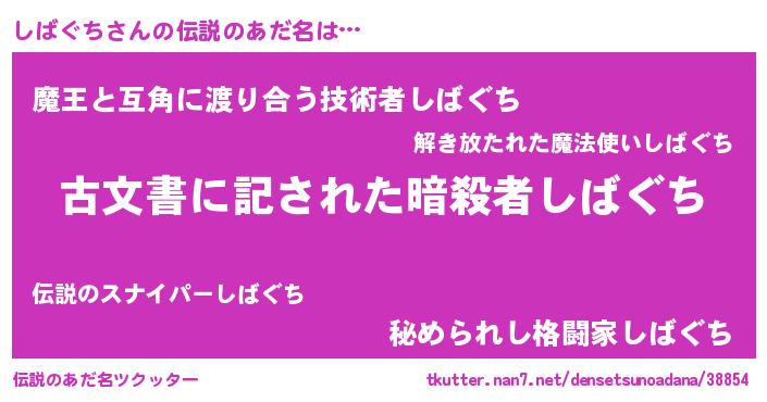 | 男性向けラノベタイトル風あだ名 | 『しばぐちに滅ぼされるだけの簡単なお仕事です』 |