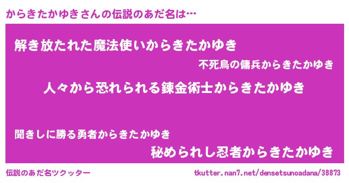 | 女子向けラノベタイトル風あだ名 | 『からきたかゆき夫妻のなれそめ』 |