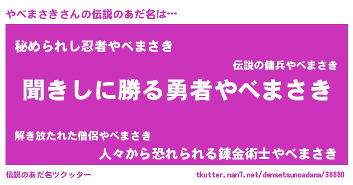 | 意味不明あだ名 | 『永久保存やべまさき』 |