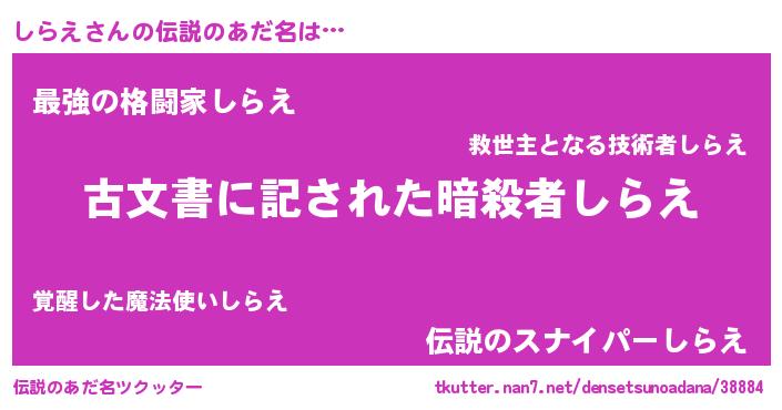 | 男性向けラノベタイトル風あだ名 | 『この素晴らしい世界にしらえを!』 |