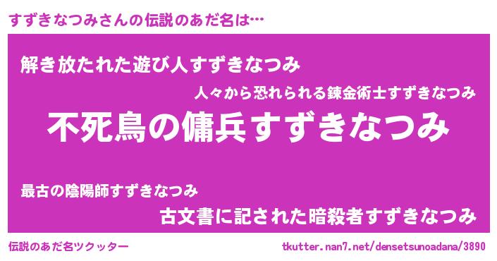 | ファンタジー風あだ名 | 『ゼスズトゥ』『スズフェル』 |