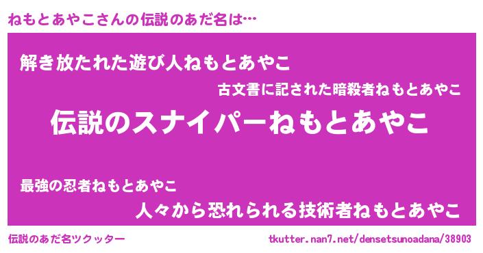 | 胡散臭い通販商品みたいなあだ名 | 『必ず成功する霊験あらたかなお札…その名も「ねもとあやこ」』 |