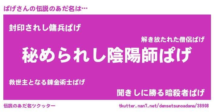 | ヒーロー風カッコイイあだ名 | 『ウルトラぱげマン』『スーパーパゲ』 |