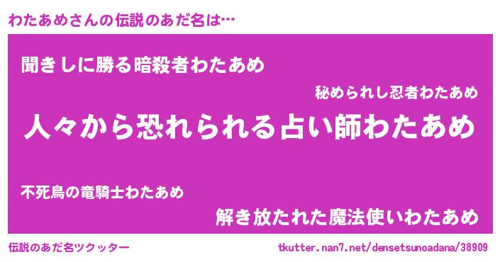 | ヘコむあだ名 | 『わたあめ(笑)』『わたっ子』 |