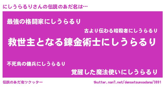 | ヒーロー風カッコイイあだ名 | 『天空の使者にしうらるり』 |