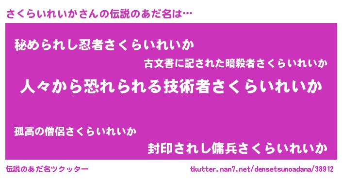 | 意味不明あだ名 | 『眠気覚ましガムさくらいれいか味』 |